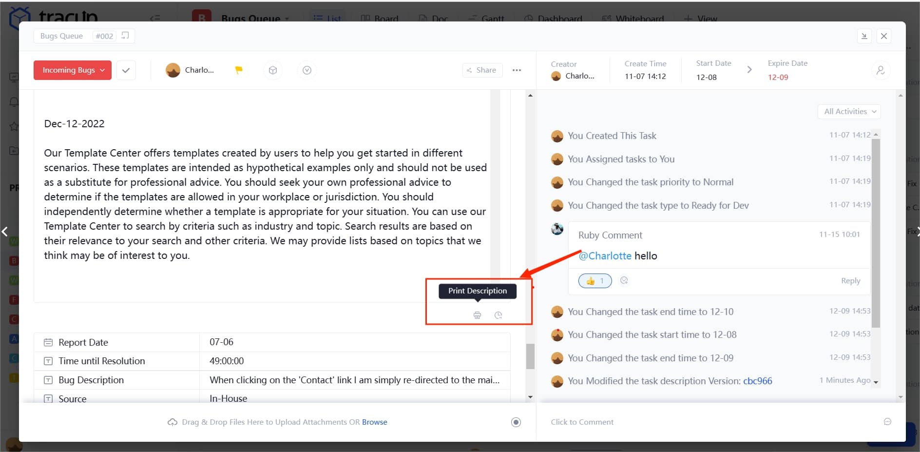 Tracup now supports users print their description page, just click the print bottom in the right corner, this page will be automatically printed by users.