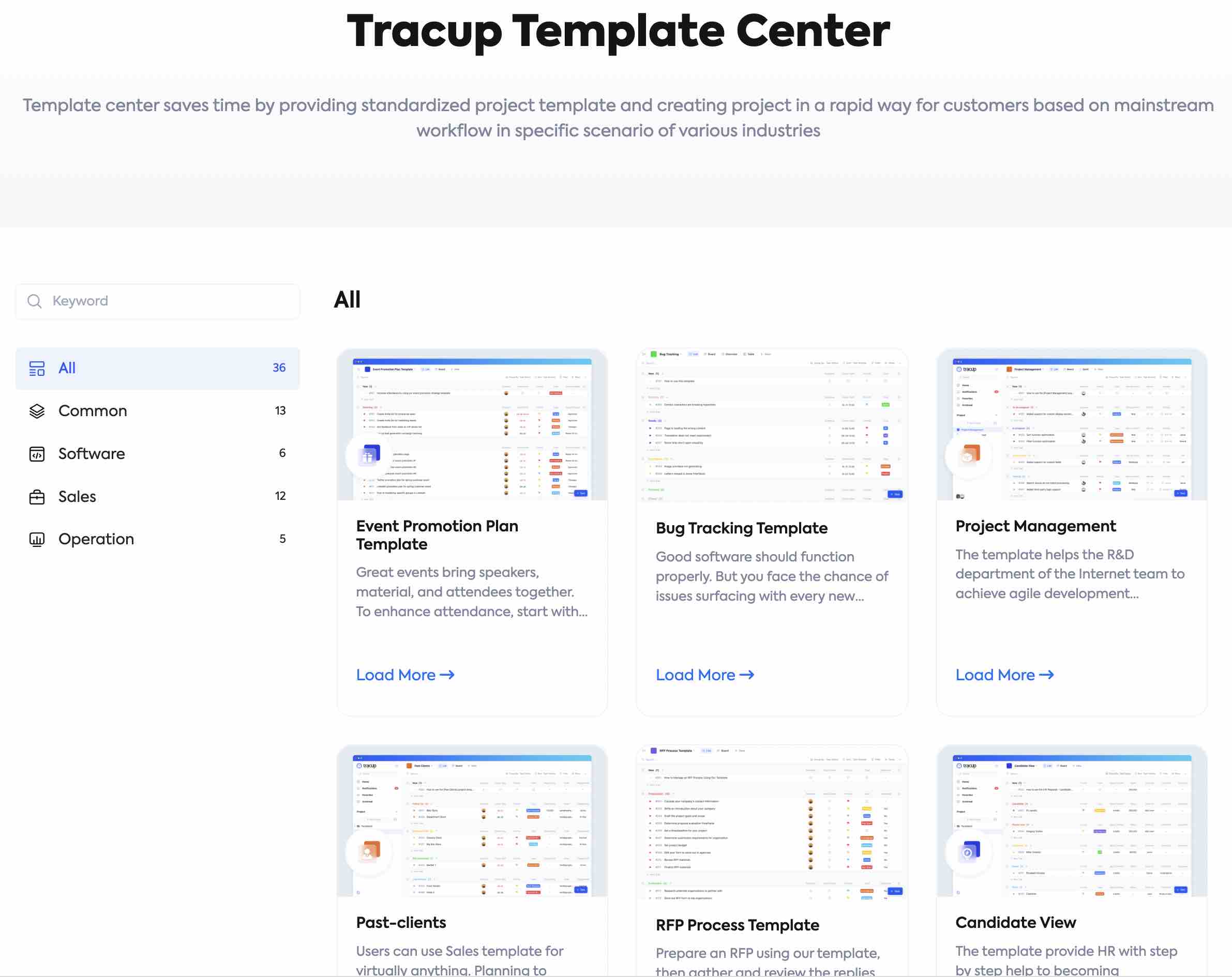 Tracup Template Center saves time by providing standardized project templates and creating projects in a rapid way for customers based on mainstream workflow in the specific scenario of various industries. The following are some very typical templates, why not try them now?